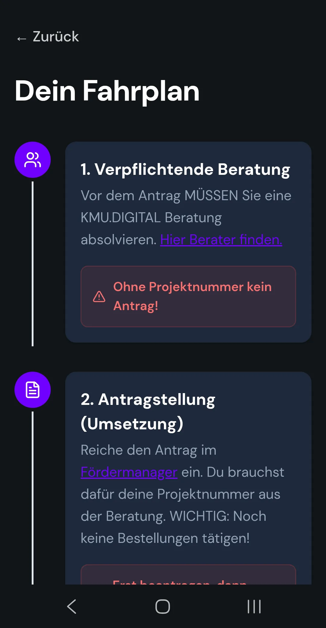 Sie bündelt die wichtigsten Schritte und Infos strukturiert an einem Ort – als unverbindliche Unterstützung für deinen Antrag. Damit du den Überblick behältst und dich voll auf dein Business fokussieren kannst.